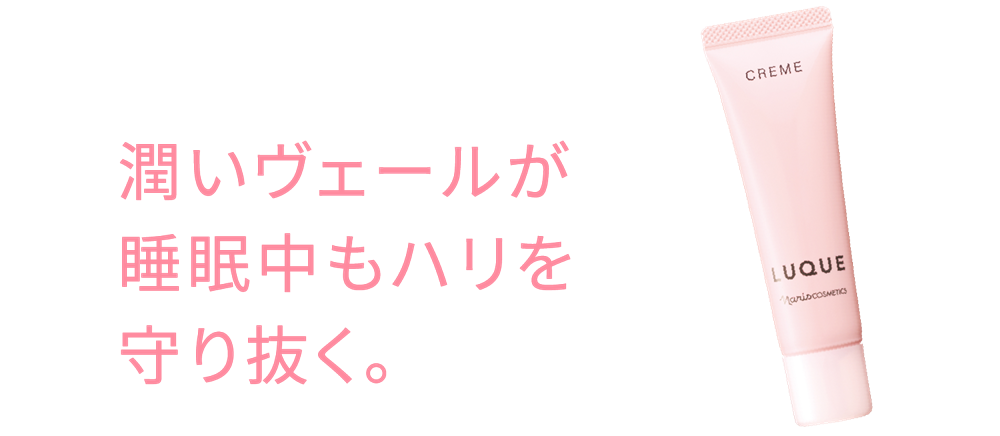 自然由来の保湿成分が眠っている間も潤いをしっかり抱え込み、いきいきとしたハリや弾力のある肌へ導きます。