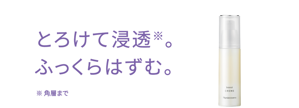 とろりとなめらかにのびるクリームが、まるで美容マスクのように肌にぴたっと密着。潤い美容成分を角層深部まで届けます。