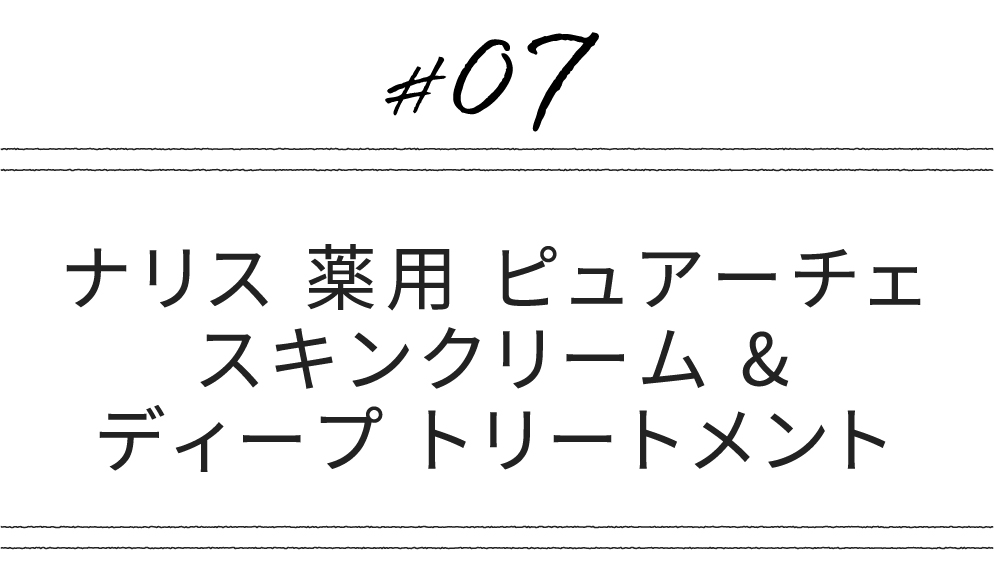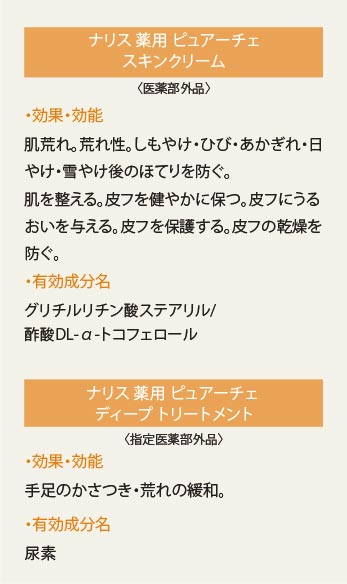 しかし、乾燥が進む季節は、肌荒れで手がガサガサになることもしばしば。そんな時期も気持ちよく毎日のスキンケアが続けられるようにと誕生したのが、薬用シリーズ。2006年にスキンクリームが、2007年にディープ トリートメントがピュアーチェに加わり、顔、身体はもちろん、手や足のパーツケアまできめ細かくケアできるラインナップとなりました。