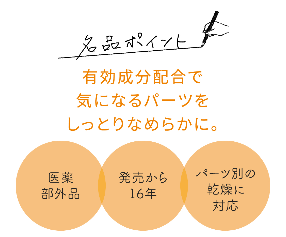 肌荒れはその状態によって、適切なアイテムを選ぶとベターです。肌がガサガサするなら、肌荒れを防いで皮フを健やかに保つアイテムを。ひじ・ひざ・かかとなど、乾燥で角質が厚くなってゴワゴワする肌荒れには、潤いで肌をなめらかに整えるアイテムがオススメです。
