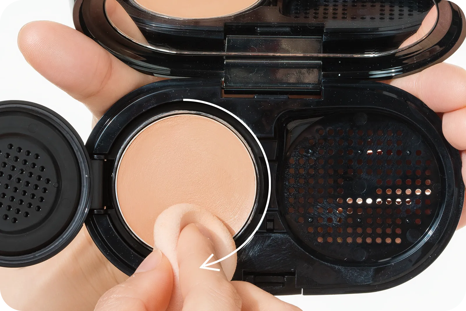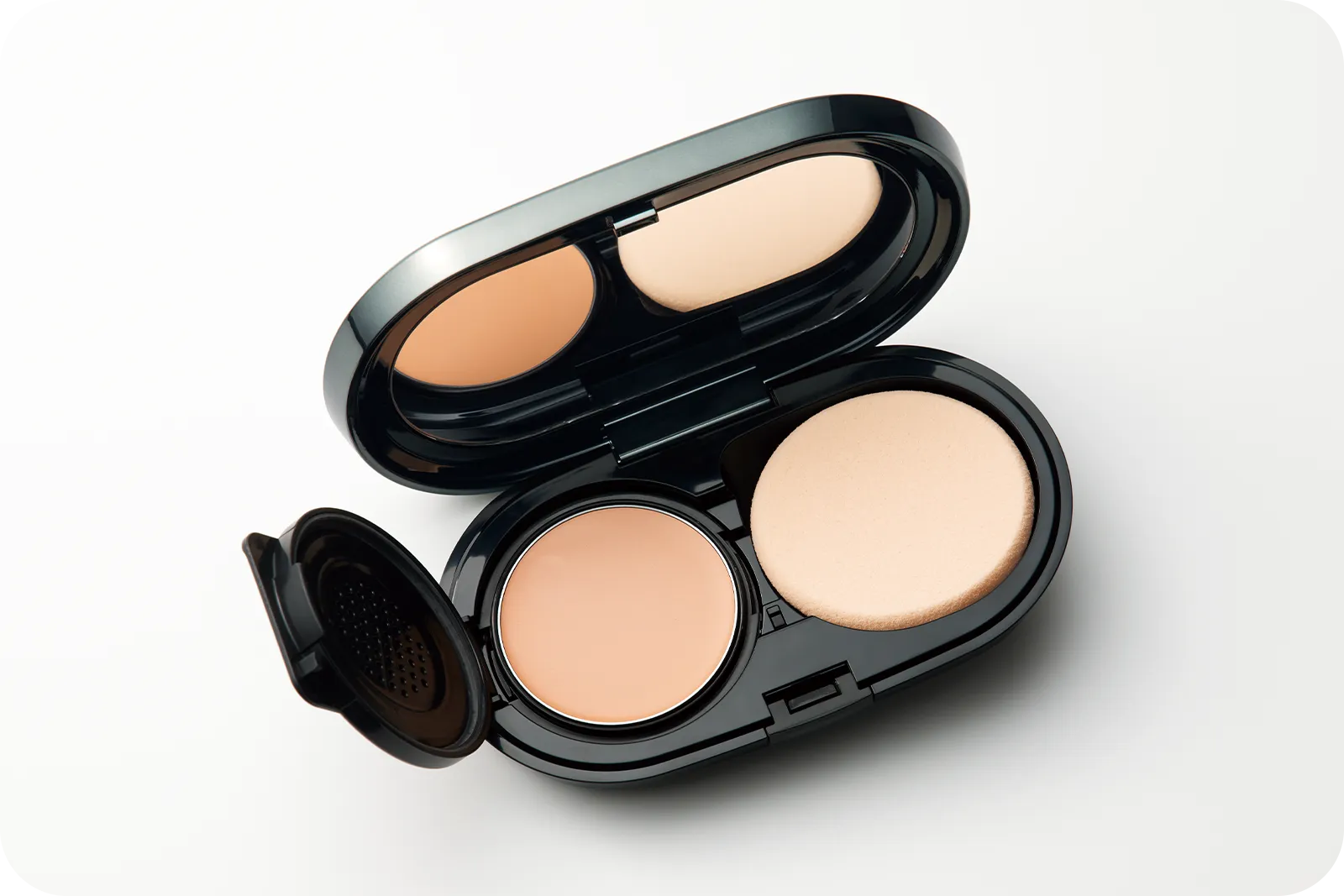 下地とファンデーションが一緒になった「セルグレース ベースイン パクトファンデーション」が◎。素肌を生かしたハリとツヤが簡単に演出できます。