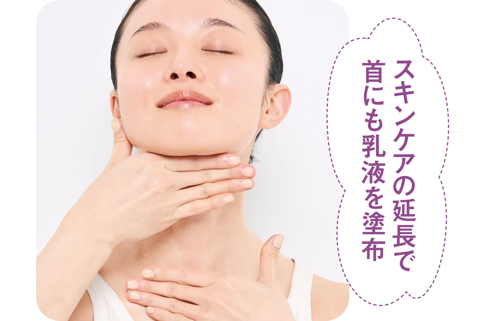 朝晩の乳液でのスキンケアの際はぜひ首元まで塗ってほしいですね。