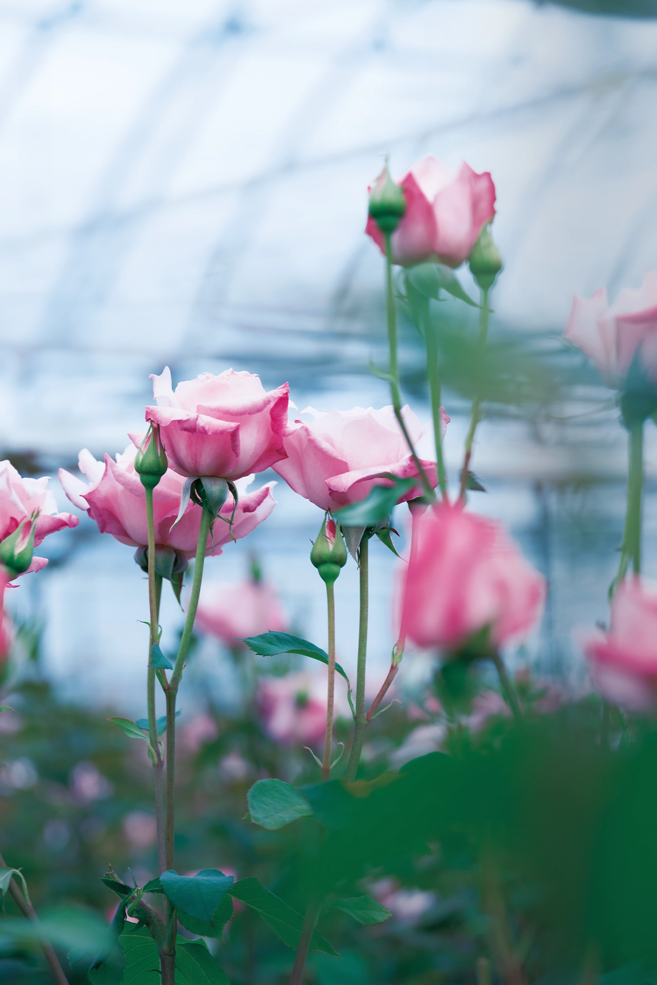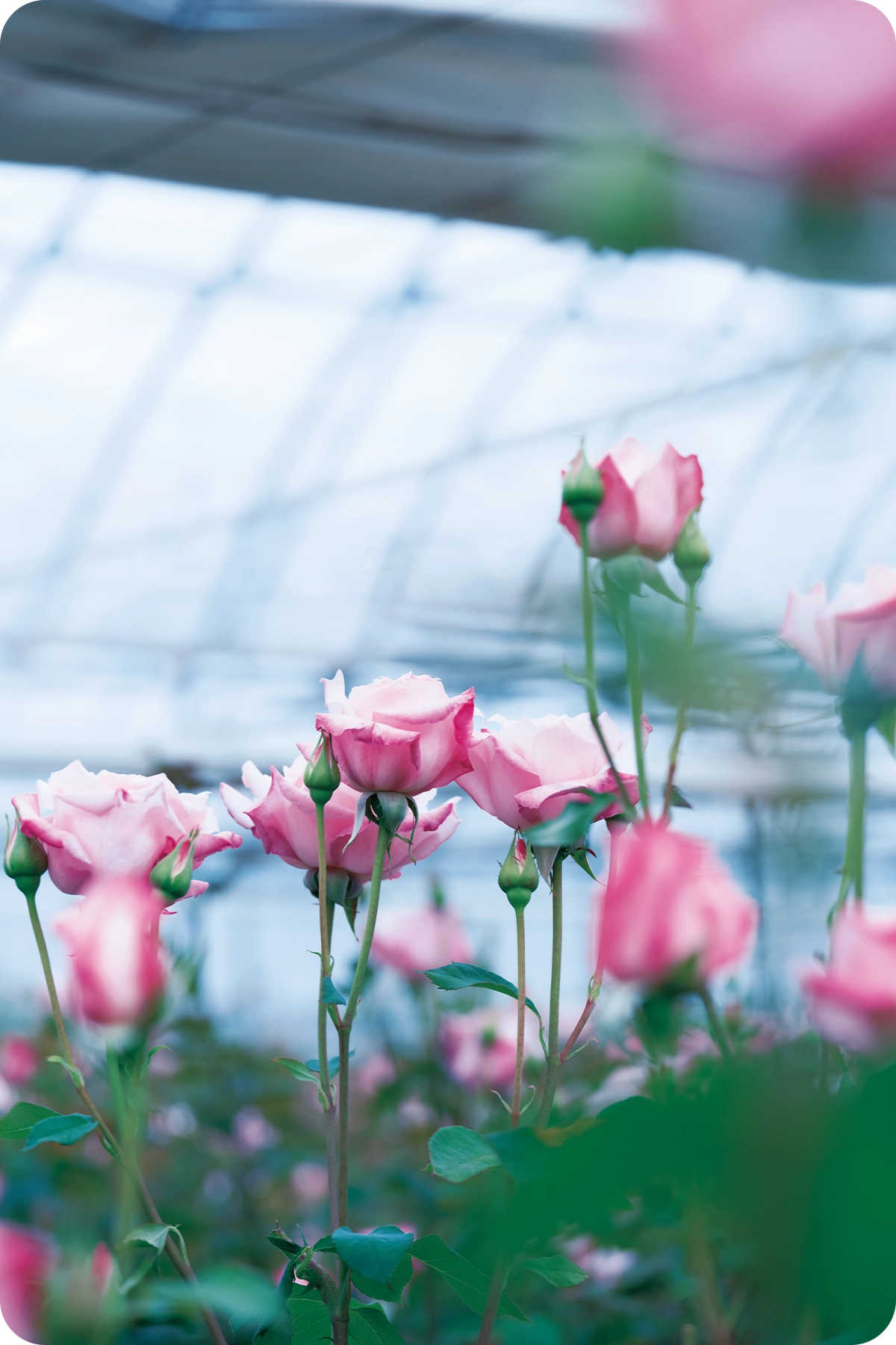 繊細なバラを農薬に頼らずに守るための答えは、光の力にありました。 夜、紫外線のUV–Bの光を照射することで、バラの免疫力を向上させ病気抑制の働きがあり、さらにこれには害虫を自然に遠ざけるという嬉しい効果も。それは、目には見えない「光の盾」。 自然の叡智と科学の融合が、「花びらに農薬をかけずに育てる」という理想を現実のものとしました。美しさの源泉を守り育む私たちの情熱は、24時間365日、この場所に息づいています。