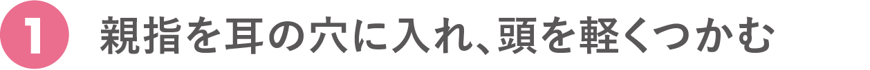耳の穴に親指を入れ、残りの4指で頭をつかむ。添える程度でOK。爪を短く切り揃えてから行って。