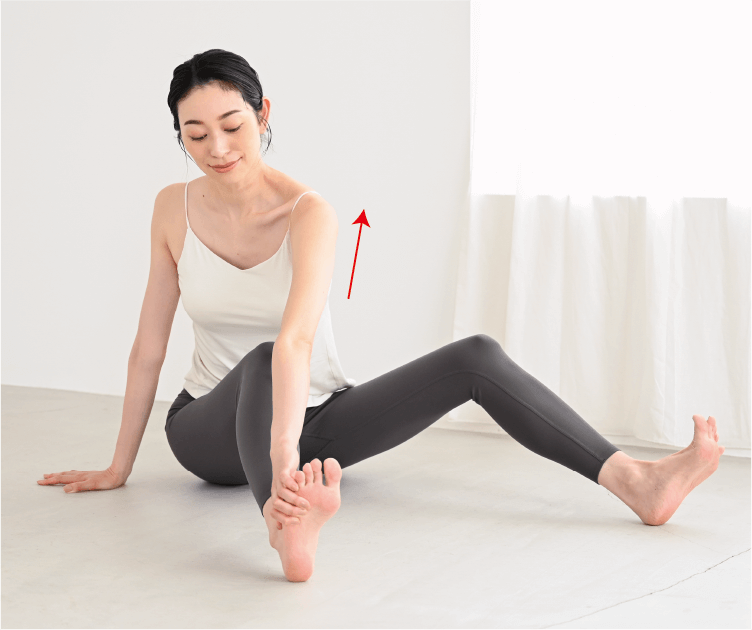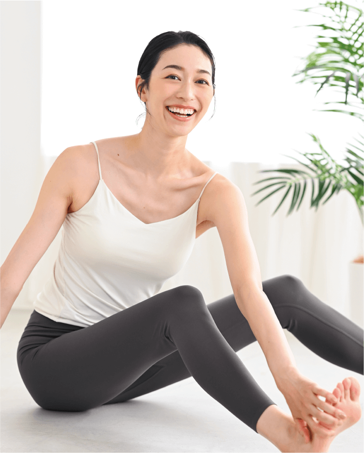 むくんでいる状態は、血中に水分や老廃物、余分な脂肪分が滞っている状態です。ストレッチをすると血流や酸素の巡りが良くなり、筋肉のよく動く、むくみのない身体に近づけます。実際、〝太っているんじゃなくてただむくんでいるだけ〟という女性も多く、しっかりとストレッチをしてあげると数ヶ月でかなりほっそりされる方も多いんですよ。 特にむくみが顕著に現れるのは〝第二の心臓〟と呼ばれ、ポンプの役割を果たすふくらはぎ。また、普段あまり動かすことのないそけい部や肩甲骨も滞りやすいパーツです。この〝3大滞り部位〟を、毎晩短時間でもいいのでほぐしてあげましょう」