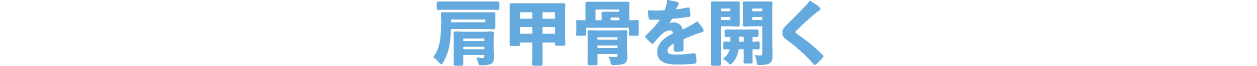 PCを触るなど、手を前に出して作業している時は肩甲骨が開いている状態。この状態は肩甲骨を使えておらず、肩が凝る原因です。肩甲骨は、特にしっかりほぐしたい部位なので、「開く+寄せる」動きを1セットで行います。